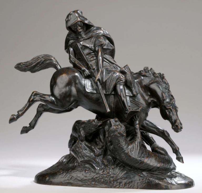 Élève de David d’Angers à l’École des Beaux-Arts de Paris, Hippolyte Maindron expose au Salon de 1834 à 1880. En 1839, il y connait un important succès pour une figure de Velléda contemplant la demeure d’Eudore pour laquelle il s’inspire du livre IX des Martyrs de Châteaubriand publié en 1809. Il travaille également pour de nombreux chantiers de restauration de monuments publics parmi lesquels le Louvre, le Pont-Neuf, le palais de Fontainebleau ou encore la cathédrale de Sens.