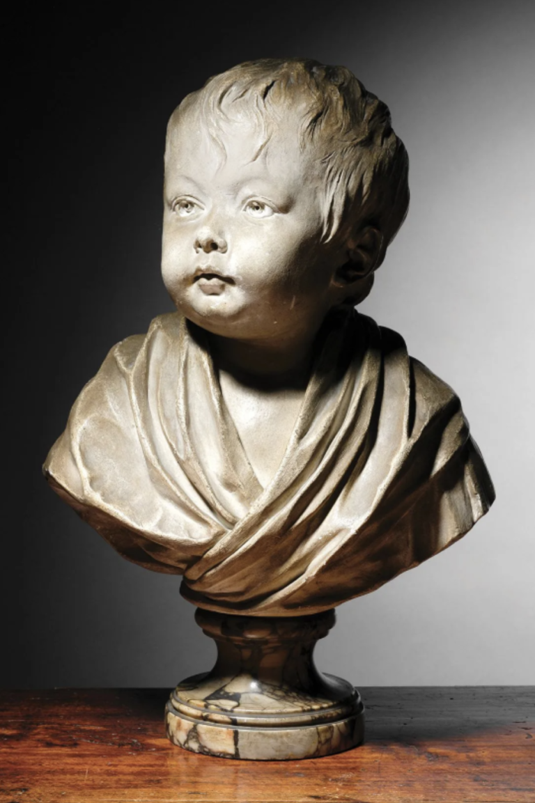 – Jean-Antoine Houdon, Portrait en buste de Claudine Houdon, à un an, plâtre patiné, H. 41 cm, Paris, musée de la Vie romantique, n°inv. D89.60