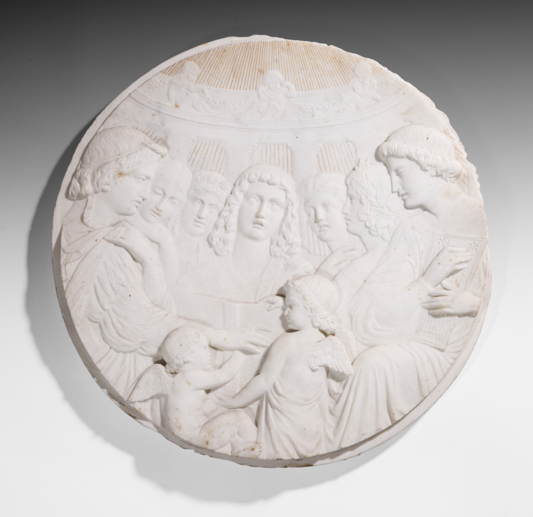 -Henry de Triqueti, Concert d’anges, 1872, médaillon en relief en plâtre, diam. 61 x 5 cm, Orléans, musée des beaux-arts, n°inv. 2035 ;