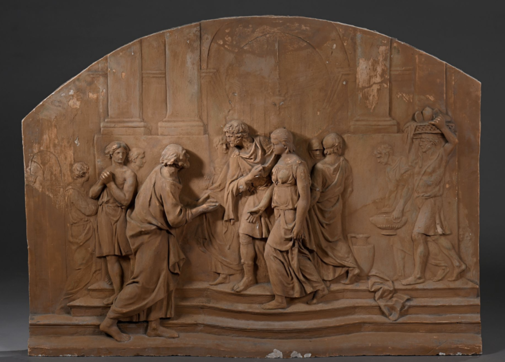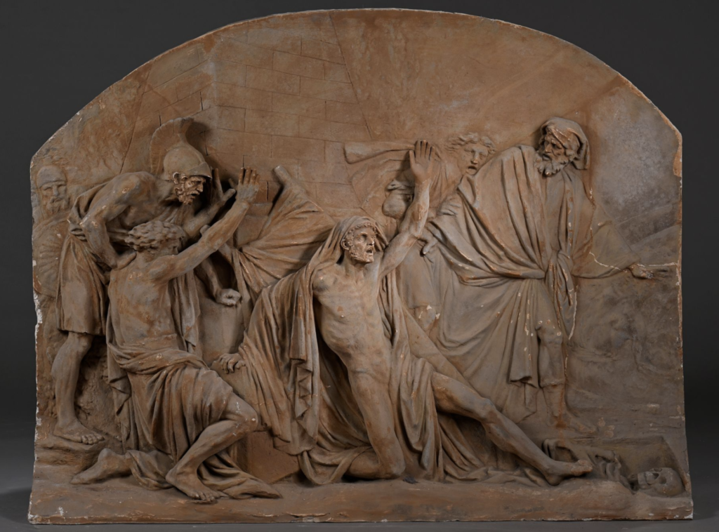 -Antoine Denis Chaudet, Joseph vendu par ses frères, 1784, plâtre à patine terre-cuite, H. 116, L. 145 cm, Paris, musée du Louvre, Inv. N 16063