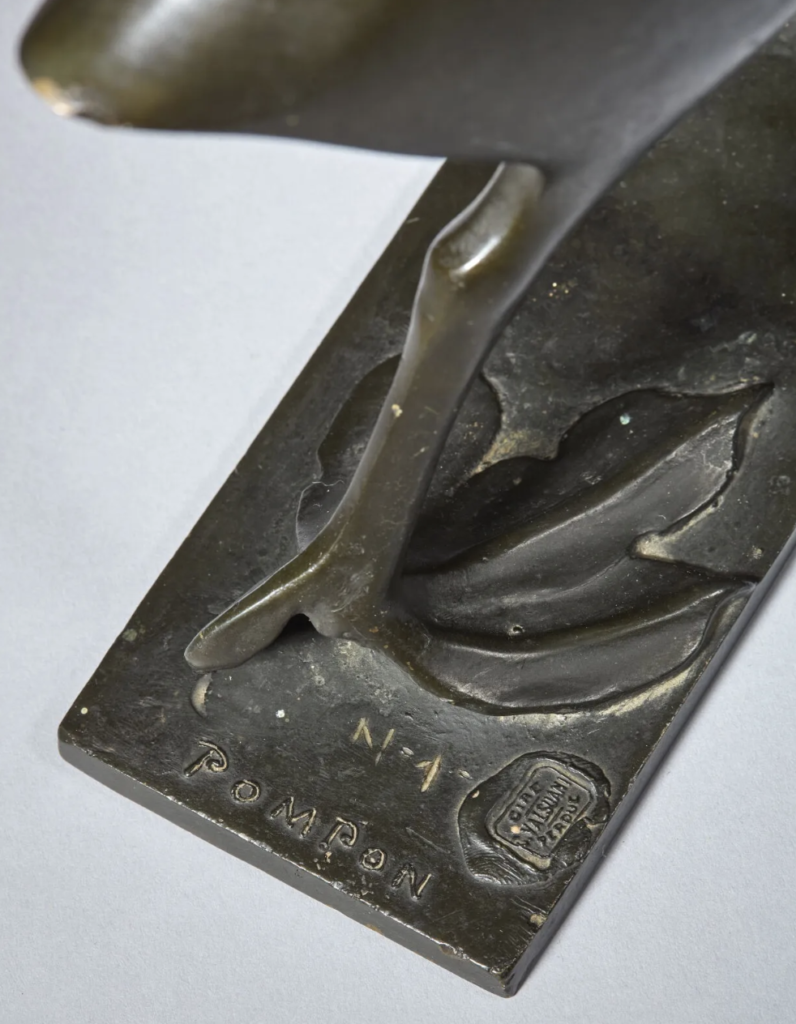 – François Pompon, Foulque, bronze, signé « /POMPON/ », porte le cachet Valsuani et le n° 1, H. 28,3 et terrasse 19,5 × 6,5 cm, provenance Galerie Saint Pierre, Lyon, commerce de l’art 2024 ;