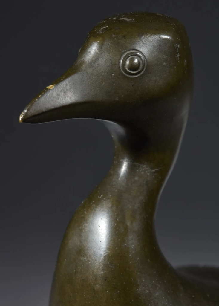 – François Pompon, Foulque, bronze à patine verte, fonte vers 1925-1930, signé «/POMPON/», porte le cachet ” Cire perdue C. Valsuani “, sans numérotation, H. 28 cm Dijon, Musée des Beaux-Arts, n° inv. 3784 bis ;