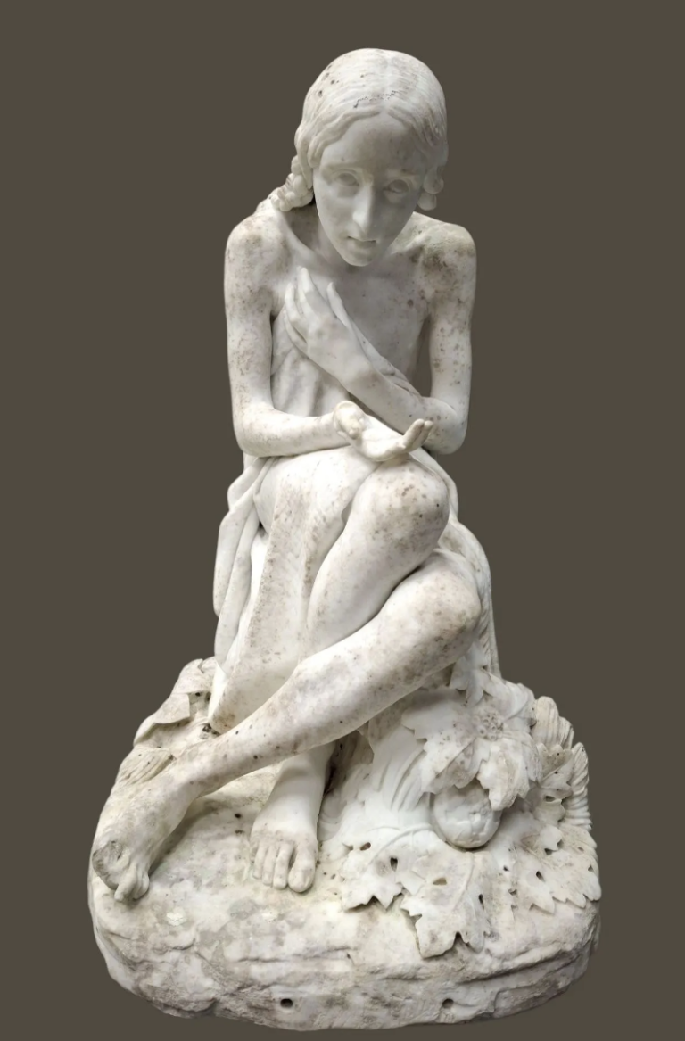 Accompagné d’un cartouche en laiton portant l’inscription : La Mendicante / Prof. CARLO FERRARI.FECE/ VENEZIA 1870