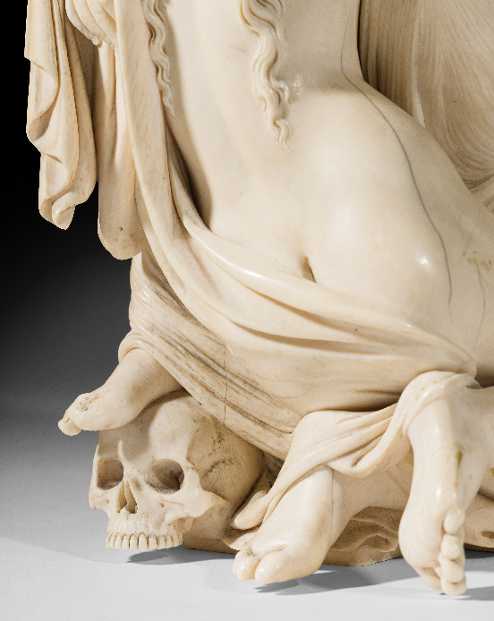 La sculpture synthétise à elle seule tout l’Art de l’artiste favori des familles princières d’Orléans et de Windsor. A travers la figuration d’une vertu chrétienne, l’œuvre témoigne de l’influence encore prégnante du néo-classicisme et de l’engouement de l’artiste pour les décors Renaissants. Le choix du sujet et son sens dramatique s’inscrivent dans la mouvance romantique dont Triqueti est l’un des plus célèbres représentants, tout en répondant à son profond sentiment religieux. Enfin, le choix d’un matériau comme l’ivoire témoigne de l’ouverture d’esprit de Triqueti, de sa créativité protéiforme et éclectique, ainsi que de son intérêt constant pour les techniques traditionnelles ou innovantes.
