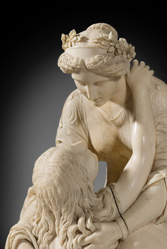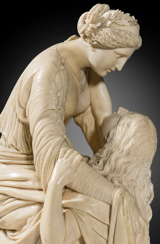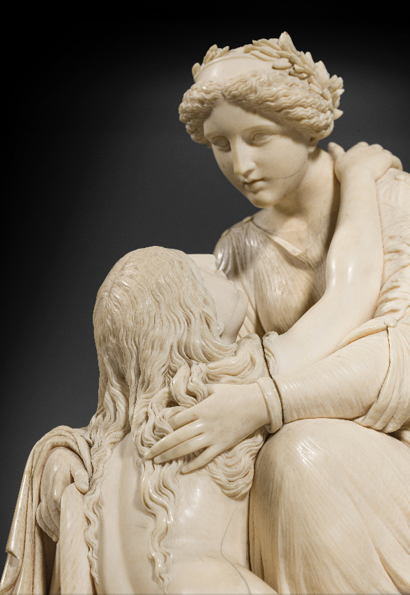 Ce groupe sculpté en ivoire représentant La Miséricorde divine accueillant le Repentir est indiscutablement, tant par sa dimension que par sa qualité, une des œuvres majeures de Henry de Triqueti et l’un des chefs-d’œuvre de l’art de l’ivoire en France au XIXème siècle.