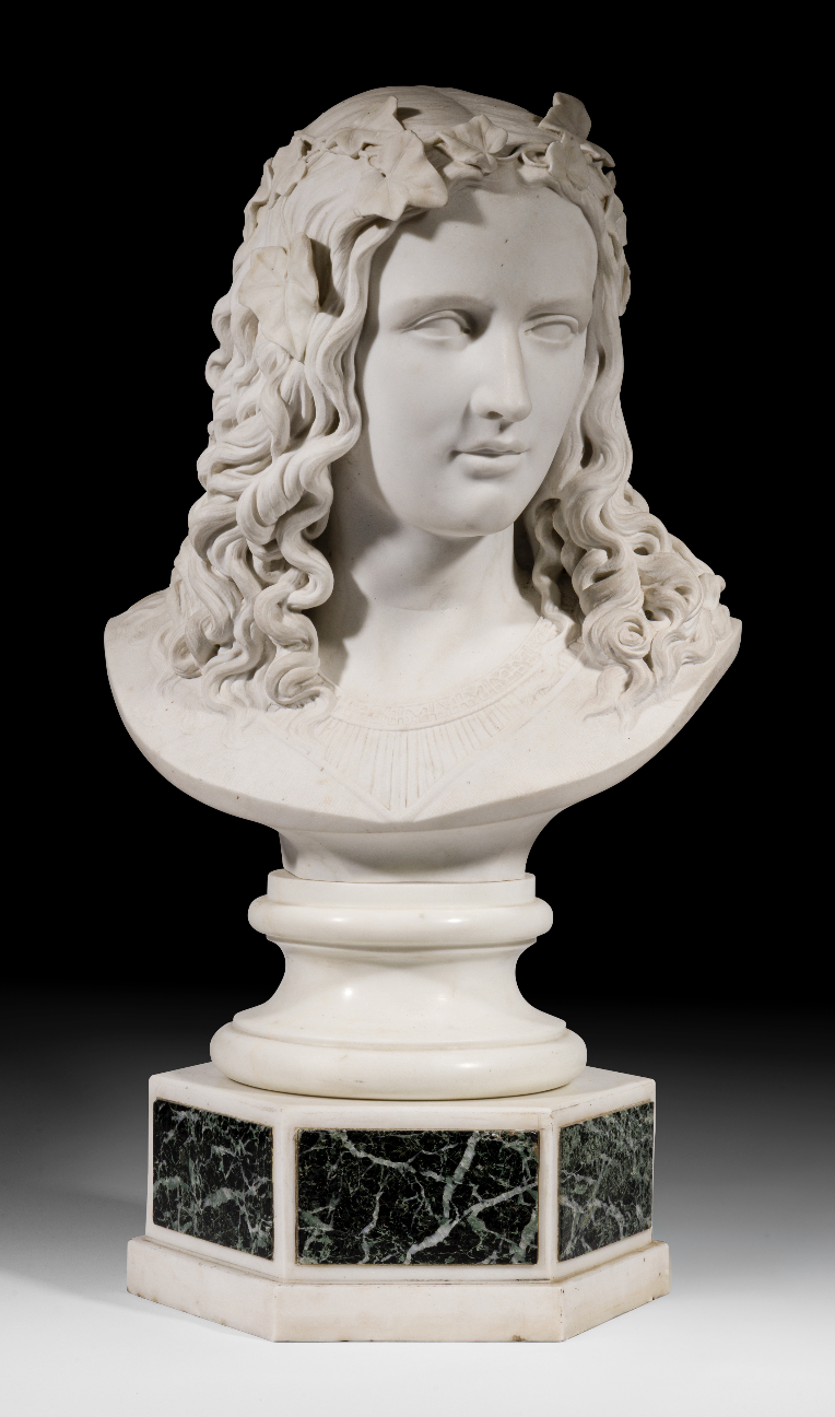 Ce buste en marbre alliant subtilement beauté idéale néoclassique et naturalisme d’une grande fraîcheur constitue une véritable ode à la culture italienne qui anime et inspire profondément Henry de Triqueti tout au long de sa carrière.