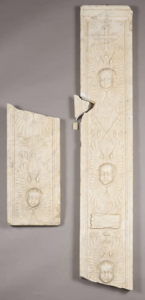 Pilastre à décor de têtes de putti ailés et de branches d’olivier