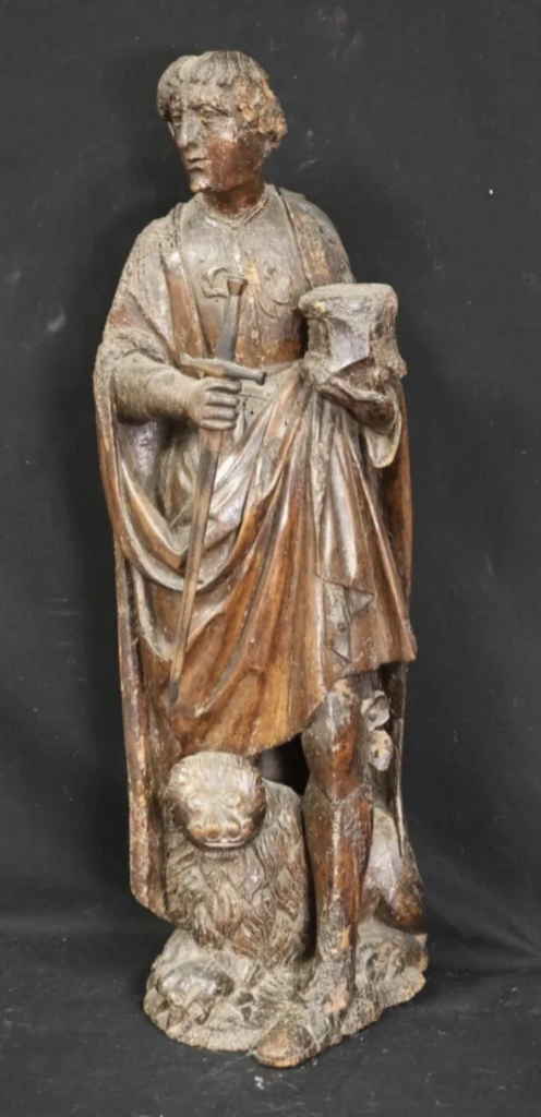 Accidents et vermoulures, restaurations, main et épée rapportées