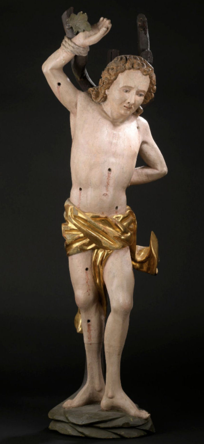 Restaurations, reprise à la polychromie et à la dorure, lacunes, petits accidents et flèches manquantes