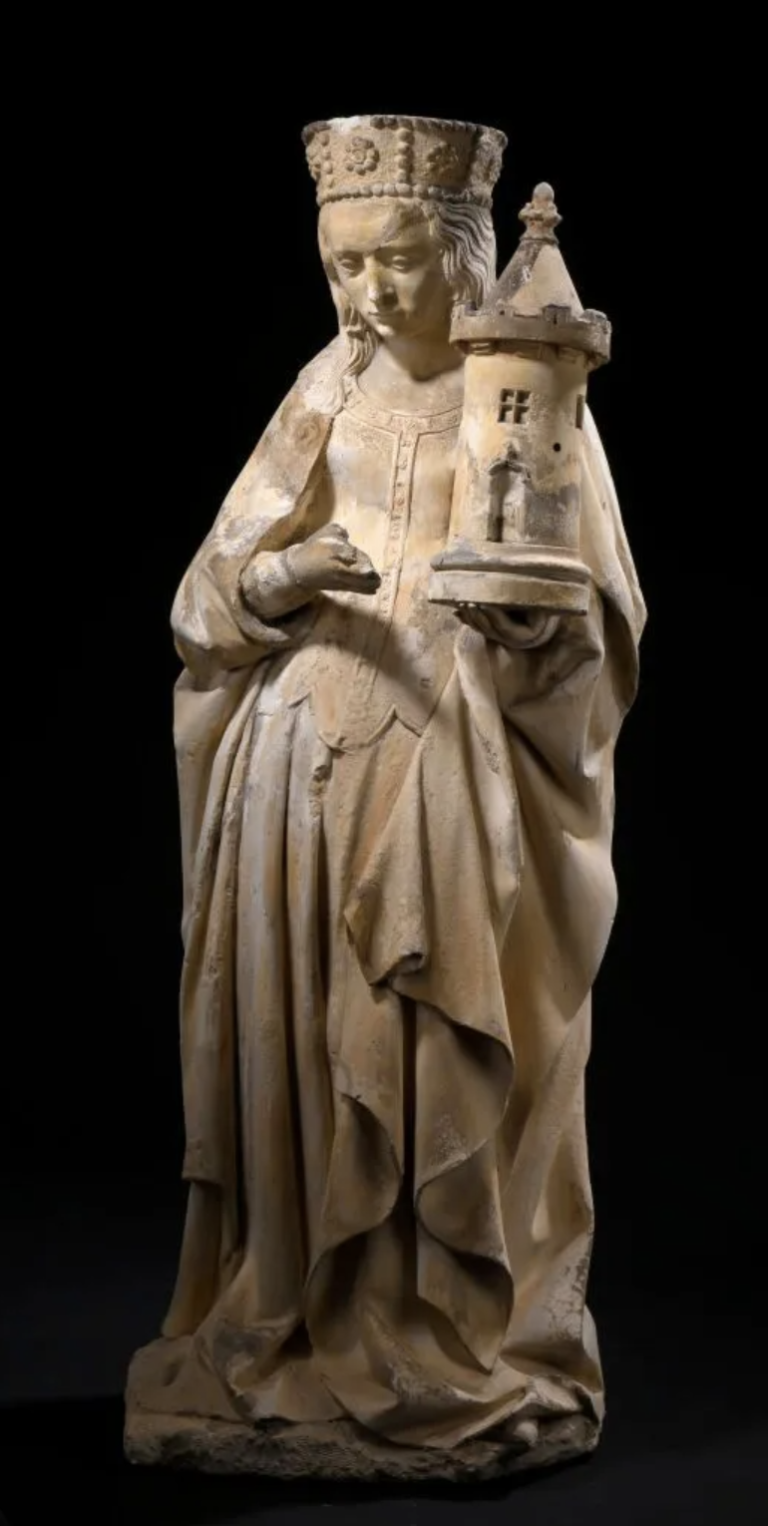 – Bourgogne, XVIème siècle, sainte Barbe, pierre calcaire, Moutiers-Saint-Jean.