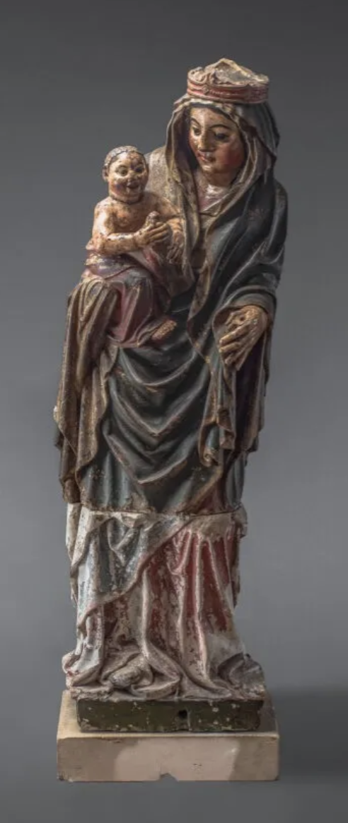 Tout en s’inscrivant dans la tradition de la statuaire mariale du XIVème siècle, notre Vierge à l’Enfant présente les innovations apparues dans l’iconographie du XVème siècle : des interactions plus démonstratives entre la Vierge et l’Enfant, des émotions plus expressives et des vêtements aux drapés plus complexes. Réputée pour avoir été retrouvée dans la ville de La Mothe située aux confins de la Champagne, de la Lorraine, de la Bourgogne et de la Franche-Comté, cette sculpture présente des influences du style bourguignon du XVème siècle, notamment dans le traitement du manteau de la Vierge.