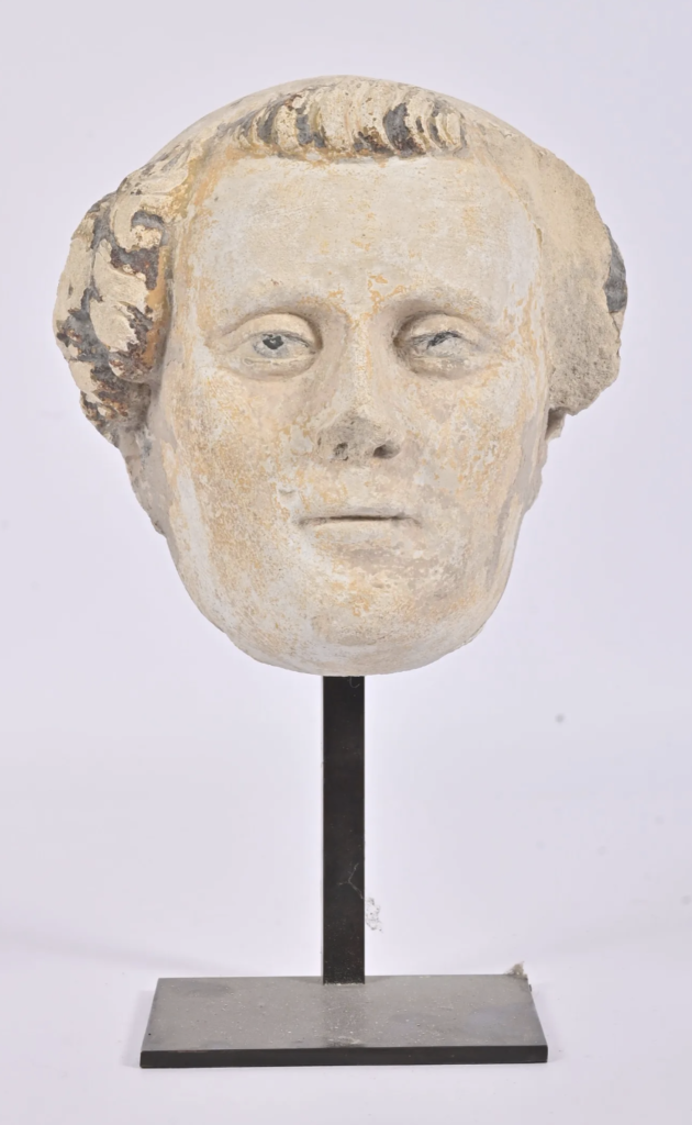 Pierre calcaire avec traces de polychromie